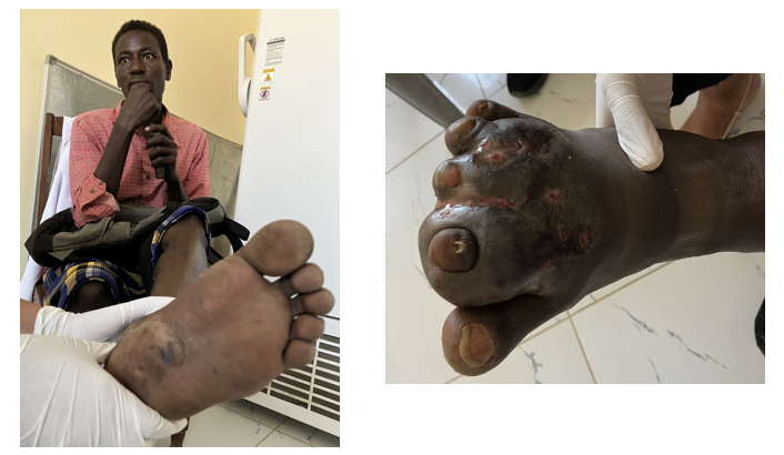 On the day of our visit, we met three mycetoma patients. Since all live far from the hospital, it takes a long time for them to travel, and those with jobs must take a day off. In the local community, there is stigma associated with various diseases, including mycetoma, which sometimes extends even from the patients’ family members. Some patients appeared to have aggravated their symptoms by traditional remedies that may not be considered entirely appropriate by Western medical standards, such as applying mud from Lake Turkana to the affected areas.