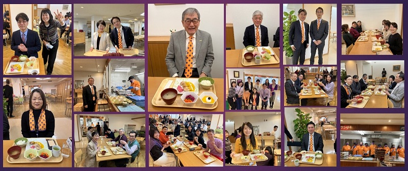At Kashima Plant, employees had colorful and delicious meals at its cafeteria decorated in orange, sharing thoughts about those affected by NTDs.