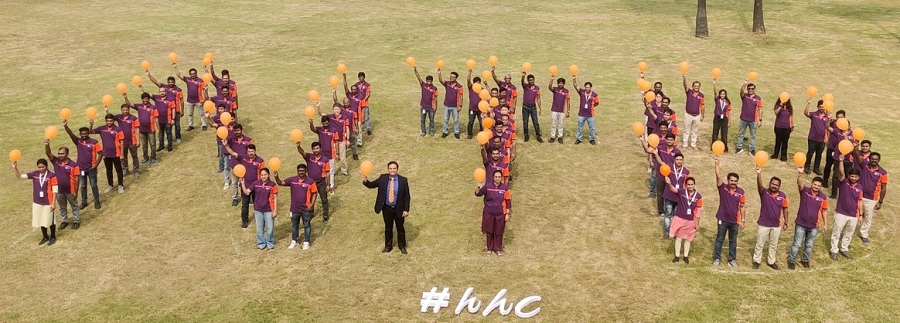 At our Vizag Plant in India, which manufactures a treatment for lymphatic filariasis, one of the NTDs, employees took a commemorative photograph forming the letters “NTD” while holding orange balloons to visualize our commitment to eliminating NTDs based on our hhc (human health care) concept, as well as enhancing our “One Team” spirit.