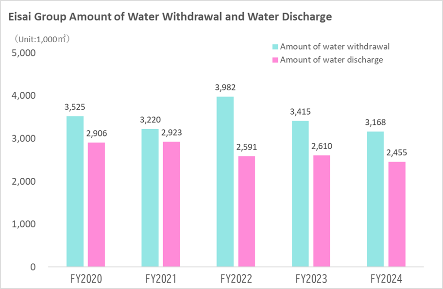 As for investments, the Eisai Group set its IWP (Internal Water Pricing) for each country where major plants and research laboratories are located, which is incorporated into the investment decision criteria as an investment effect amount by converting the reduction in water use into monetary value.